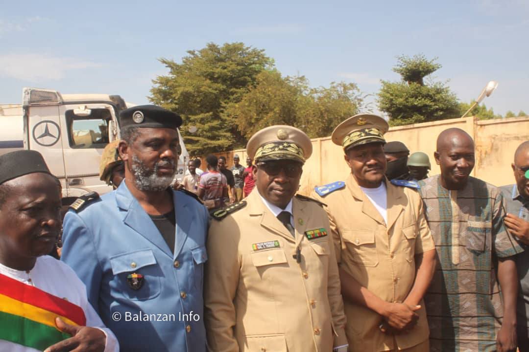 Le premier responsable de la région, le Gouverneur de Ségou, le 𝐂𝐨𝐦𝐦𝐢𝐬𝐬𝐚𝐢𝐫𝐞 𝐆𝐞́𝐧𝐞́𝐫𝐚𝐥 𝐝𝐞 𝐁𝐫𝐢𝐠𝐚𝐝𝐞 𝐝𝐞 𝐏𝐨𝐥𝐢𝐜𝐞 𝐒𝐨𝐮𝐥𝐚𝐢̈𝐦𝐚𝐧𝐞 𝐓𝐑𝐀𝐎𝐑𝐄́, a personnellement accueilli ce convoi stratégique. Il était accompagné pour l’occasion des membres de son cabinet, du Maire de la ville, ainsi que d’autres autorités administratives et coutumières de Ségou.