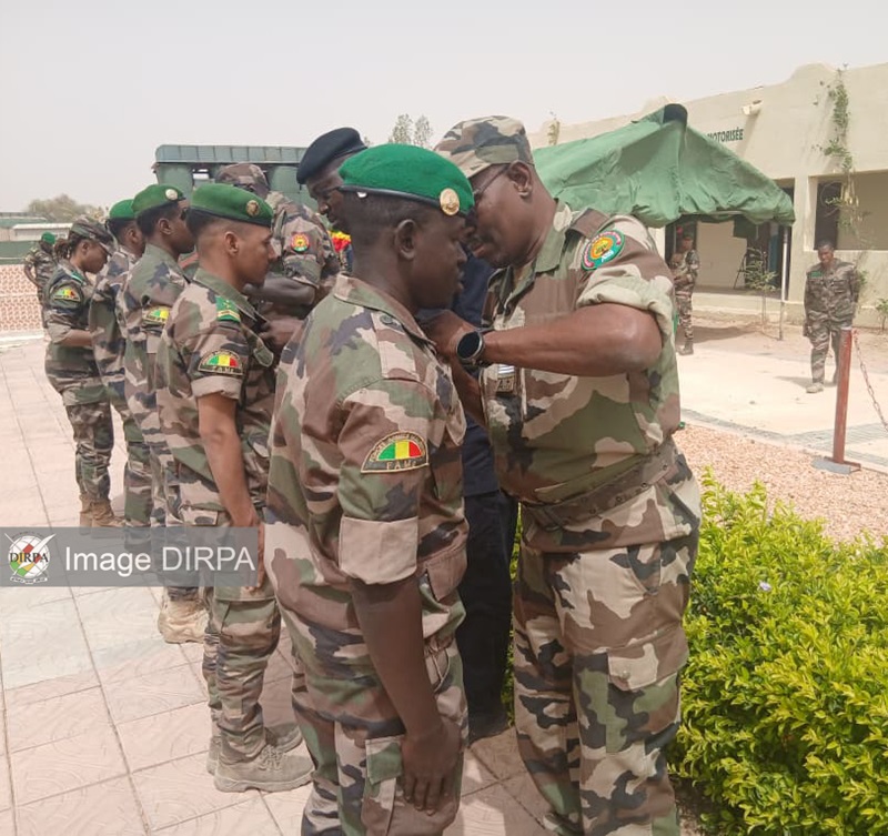 La cérémonie solennelle de reconnaissance aux nouveaux promus et de remise des médailles du mérite militaire russe s’est tenue ce mardi 7 avril 2026, sur la place d’armes du camp 2 de Kidal, dans le quartier Alioune. La cérémonie était présidée par le commandant de zone de la Région Militaire N°7, le Colonel Attacher MAÏGA. Plusieurs responsables militaires des FAMa étaient présents à cet évènement.