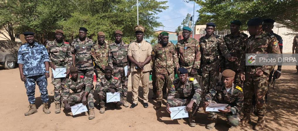 La cérémonie de fin de formation classique des CAT 1 et CAT 2 (service général et ouvrier) s’est tenue, ce jeudi 16 avril 2026, au Centre d’Instruction de la Garde Nationale, au Camp de Garde de Gao, en présence du Commandant de zone, le Colonel Ibrahim SAMASSA, du Commandant de la Région Garde N°7, le Colonel Sounkalo COULIBALY, ainsi que de plusieurs responsables militaires de la région.