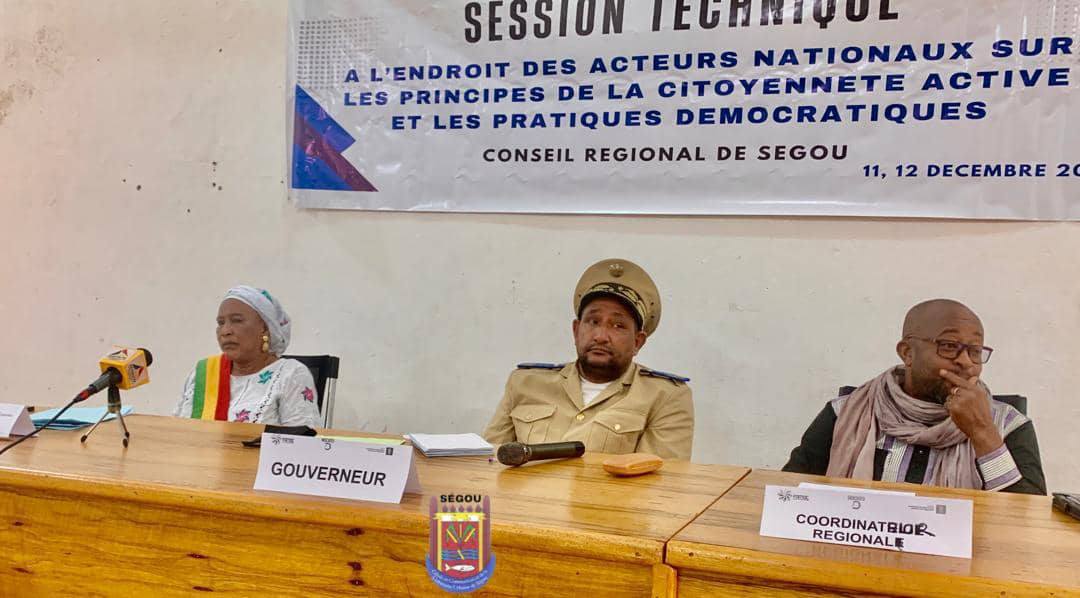 La Session Technique à l’endroit des acteurs nationaux sur les principes de la citoyenneté active et les pratiques démocratiques s’est tenue, ce Jeudi 11 Décembre 2025, dans la salle de délibération du Conseil Régional de Ségou, sous l’égide du Conseiller aux Affaires Administratives et Juridiques du Gouverneur de Région de Ségou, Mohamed Aboubacrine Ag Mohad Aly, en présence de la 5ème Adjointe au Maire de la Commune Urbaine de Ségou, Sacko Djelika Haïdara.