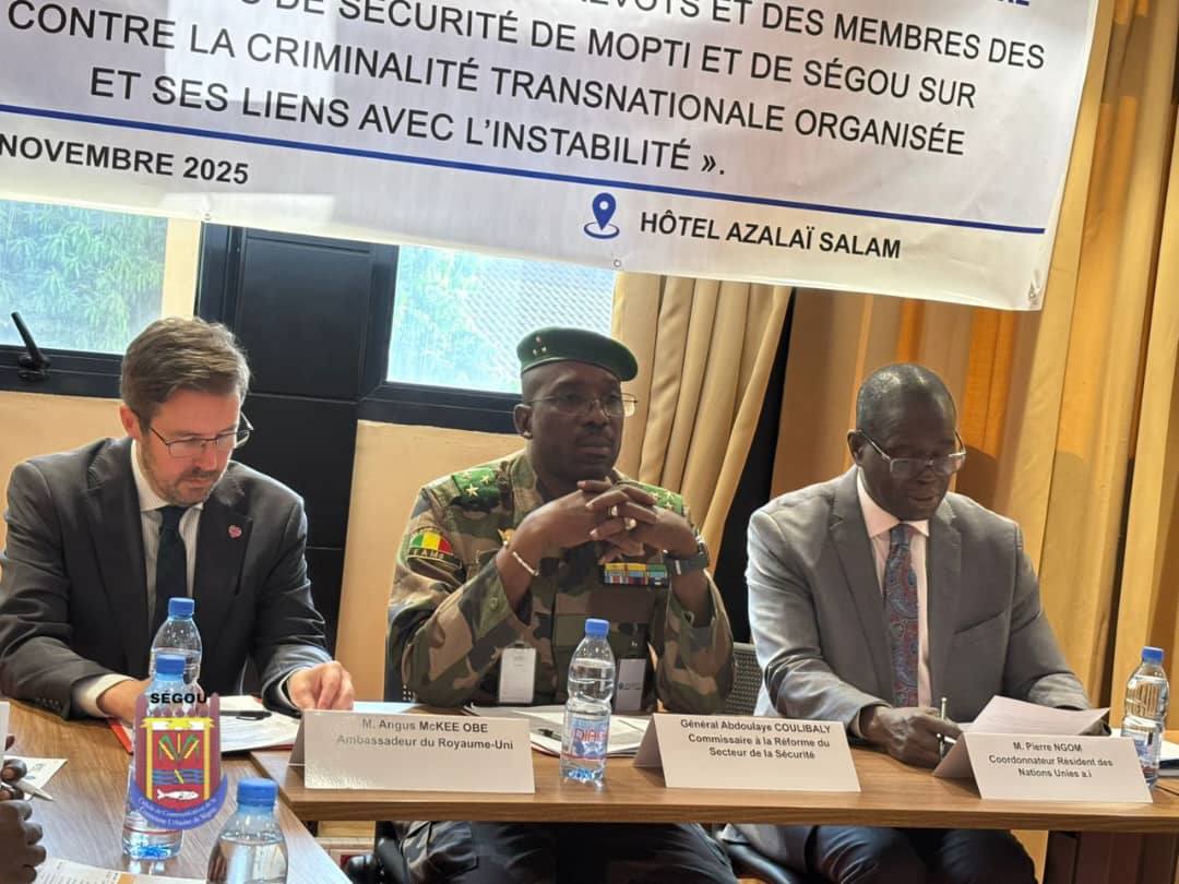 Depuis le 28 novembre 2025, une importante délégation du Comité Consultatif de Sécurité (CCS) de Ségou participe à un atelier de formation portant sur la lutte contre la Criminalité Transnationale Organisée (CTO), ainsi que sur le monitoring et le reporting des violences sexuelles liées aux conflits et la collecte des données. Les travaux se tiennent dans la salle de conférence de l’hôtel Azalaï Salam.