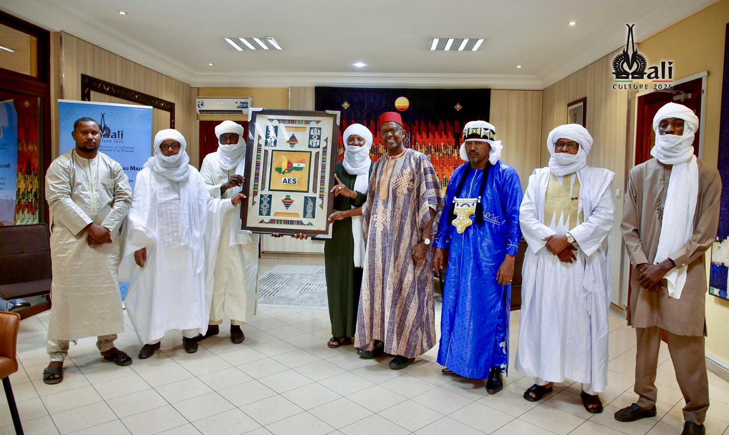 Le Ministre de l’Artisanat, de la Culture, de l’Industrie hôtelière et du Tourisme, M. Mamou DAFFÉ, a reçu en audience ce lundi 3 novembre 2025 les organisateurs du Festival Nord Mali ainsi que l’association d’artisans touaregs (les Inhadan) : Timidwa, accompagnés de l’honorable Abdoul Majid Ag Mohamed Ahmad.