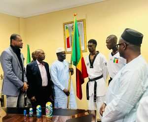 Cette rencontre avait pour objectif la remise officielle du drapeau national aux athlètes, en signe de soutien de l’État et de la grande espérance placée en ces talentueuses filles et talentueux fils du Mali. En effet, six athlètes maliens représenteront le pays à la Coupe du Monde de Taekwondo qui se tiendra en Chine.