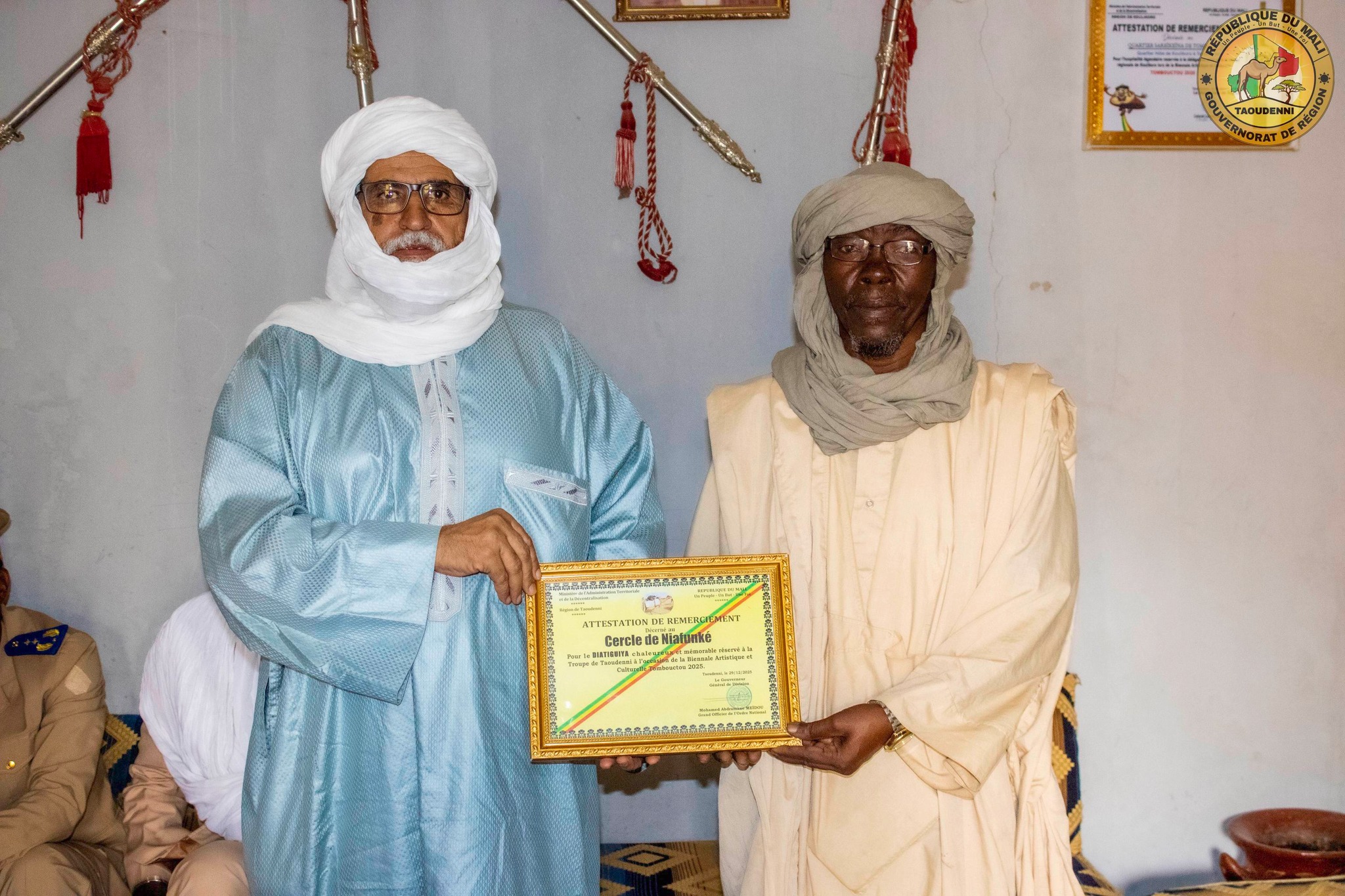 Cette visite était placée dans le cadre de la reconnaissance et du respect dont ont bénéficié le Général Meïdou et la région de Taoudenni, lors de la phase finale de la biennale artistique et culturelle, Tombouctou 2025.