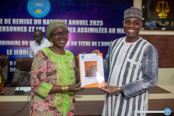 La salle de conférence du ministère de la Justice et des Droits de l’Homme a abrité, ce jeudi 23 avril 2026, la cérémonie de remise du rapport annuel 2025 sur la traite des personnes et pratiques assimilées au Mali. La cérémonie s’est déroulée en présence de Mamoudou KASSOGUE, Ministre de la Justice et des Droits de l’Homme Garde des Sceaux, accompagné de son secrétaire général et plusieurs membres du cabinet. Ont également pris part à l’événement : des représentants des partenaires techniques et financiers et de nombreux acteurs du monde judiciaire.