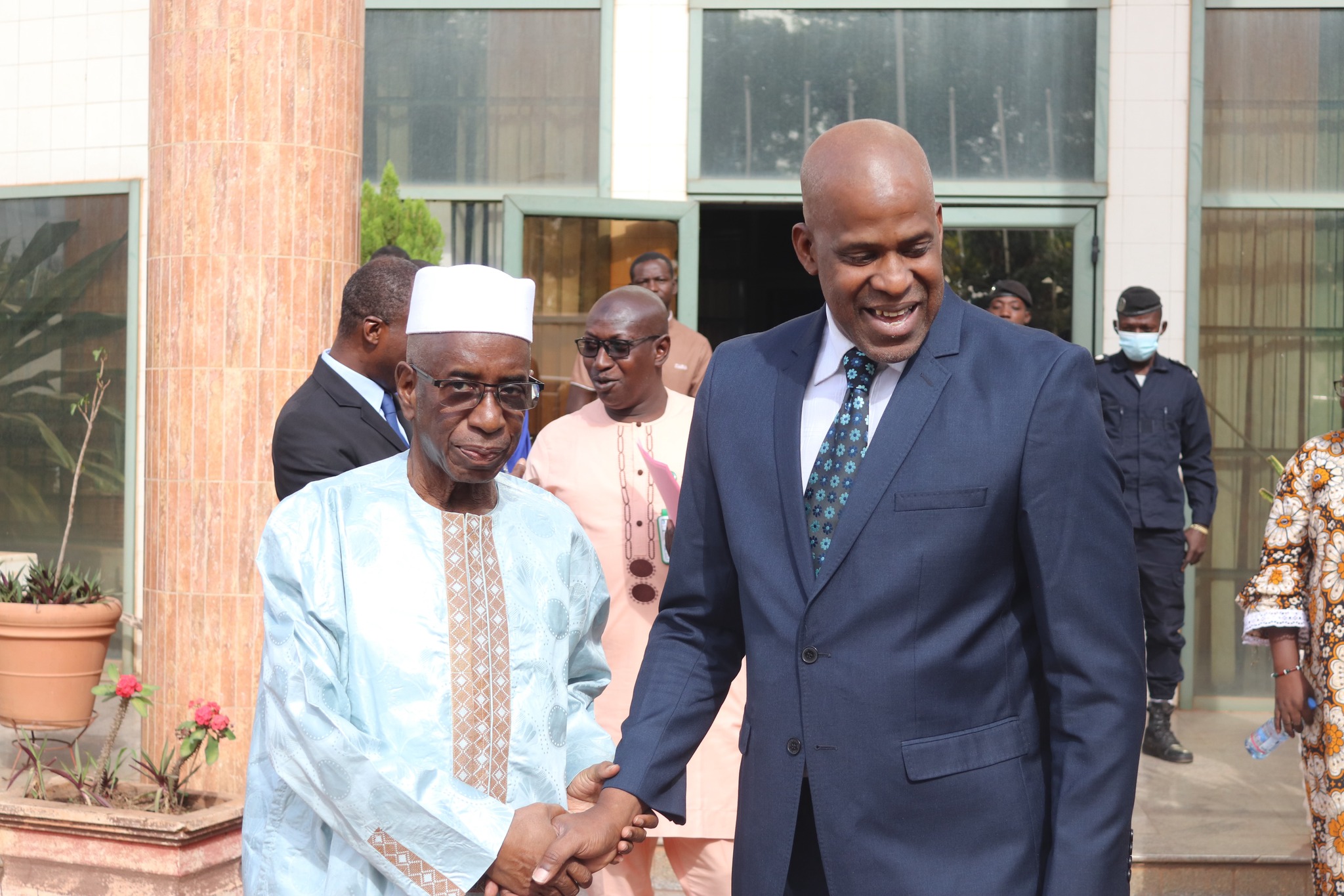 À son arrivée, le ministre a été accueilli par le président de la Cour constitutionnelle du Mali entouré des sages de l’institution. Dans son adresse de bienvenue, le président a exprimé l’honneur de recevoir le ministre et sa délégation, saluant une démarche, qui, selon lui, traduit le respect du Gouvernement à l’égard des institutions républicaines.